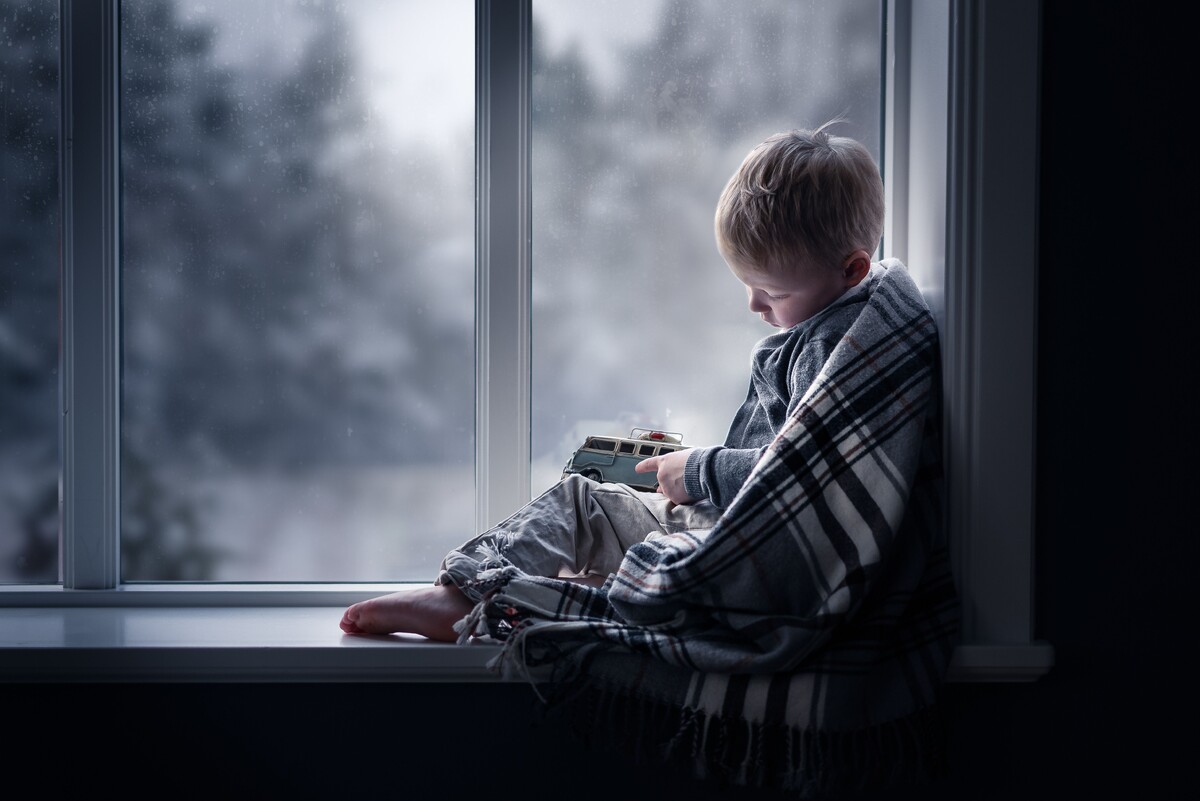 Вечером Даня уснул прямо у окна, облокотившись на подушку.