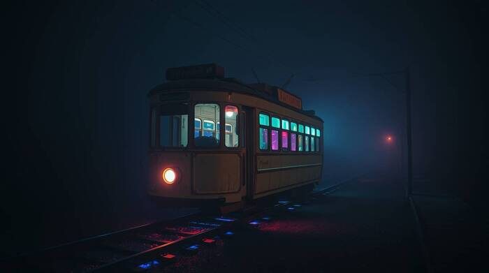 И тут из-за поворота, почти беззвучно, выплыл трамвай. Не новый и блестящий, а старый, угловатый, модели, которую я видел только на старинных черно-белых фотографиях. Цвета выцветшей слоновой кости, с глубокими бороздами ржавчины по бокам. На лобовом стекле, вместо номера маршрута, тускло мерцала и гасла одинокая буква «Ж».