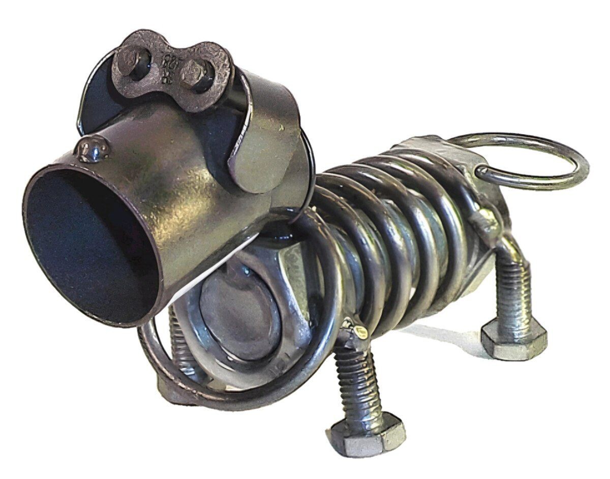 Весенний Пёс· Скульптура ручной работы выполнена из переработанного металла· Размеры примерно 4" x 1 1/2" x 2 1/2"· Прочная и качественно изготовленая· Все части скульптуры припаяны· Эта красивая работа станет отличным началом или дополнением к коллекции скульптур для коллекционеров, интересующихся искусством из переработанных материалов. Скульптуры из переработанного металла ручной работы пользуются в мире устойчивым спросом. Рынок таких изделий показывает рост на 8-12%, в год, . Эти произведения продаются через крупные интернет-платформы (Etsy, eBay, Amazon, Alibaba) и традиционные художественные галереи, с ценами, варьирующимися от $30 для небольших произведений до $18,900+ для больших инсталляций. Производство этих скульптур рентабельно с типичной маржей прибыли 8-30% для ручных изделий, хотя стартовые затраты на приобретение оборудования и материалов могут быть существенными. Для коллекционеров металлические скульптуры представляют инвестиционные возможности с оценкой 6,4-6,9%