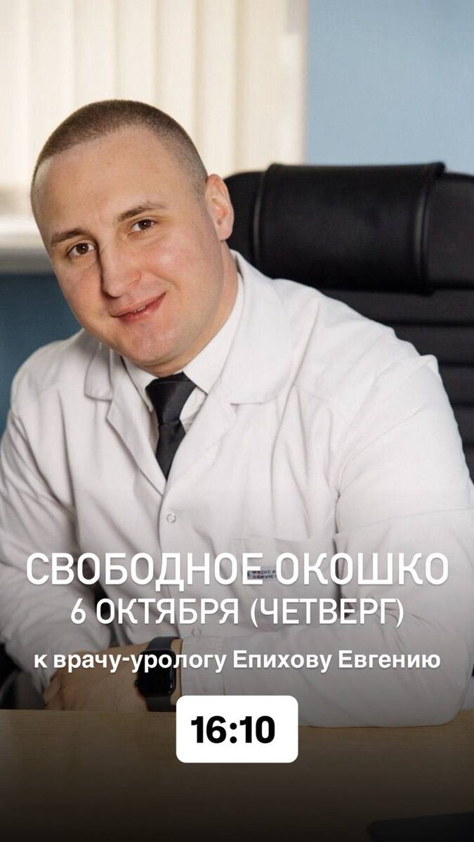 Свободное окошко НА ЗАВТРА 6 НОЯБРЯ к врачу-урологу Епихову Евгению.