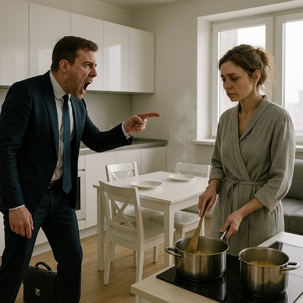— Опять у тебя ничего не готово! — Богдан швырнул портфель на диван и прошёл на кухню тяжёлой поступью. — Я с утра пашу как проклятый, а ты что делаешь? Сидишь тут, небось, сериалы смотришь!