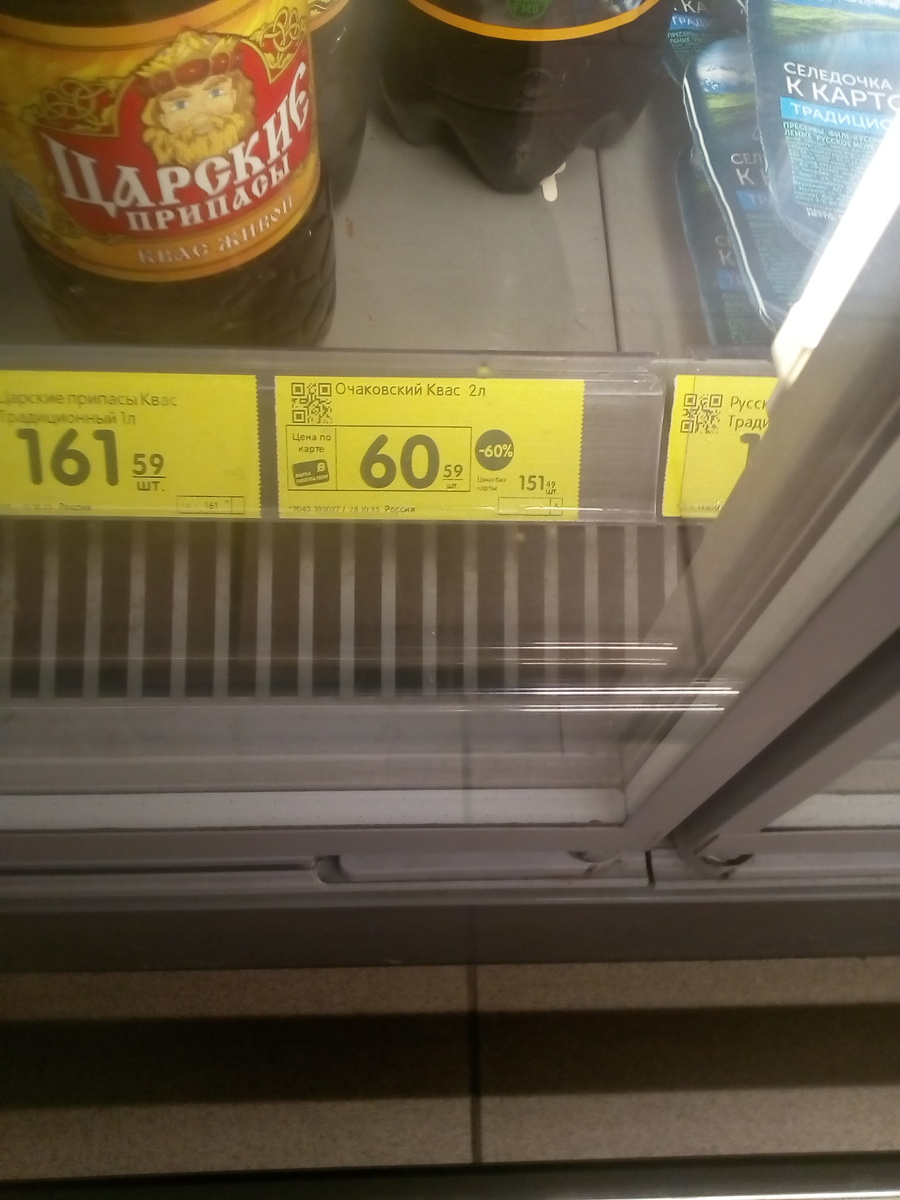 В данном случае - как я думаю - где-то в подсобке завалялось 4 бутылки кваса. В магазине товаров много, надо унифицировать... Ну и выставили по 60% скидке... К тому же срок на подходе. Сделали в марте, годен до декабря, на дворе - ноябрь. По сравнению с советсяким бочковым - коэффициент 250. Очень прилично, очень. С водкой не сравнить... Там коэффициет всего 100. Но метро то больше 1000! Так что - пью и ненарадуюсь... :0)))))) А, анекдот в тему... Выходит Илья Муромец утром из избы... Смотрит, что такое? Соловей Разбойник под деревом избитый лежит... У Змея-Горыныча головы узлом завязаны... Баба-Яга головой в ступу вбита, одни ноги торчат... Бросился Илья Муромец, вытащил Бабу Ягу из ступы... Та - заплакала... - Какой же ты добрый, Илюша! Когда трезвый. Короче: Спасибо, маркетологи! :0)