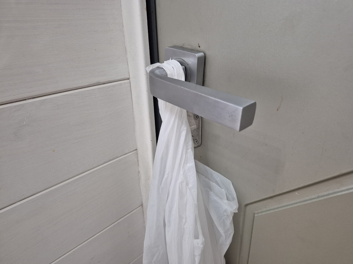 Бежит к себе в пекарню, набивает мешки и сумки выпечкой и разносит её прямо по коридорам домов. Утром, проснувшиеся хозева квартир, открывают двери, снимают с ручки пакет с выпечкой и.... вуаля можно варить кофеёк и лопать очередную порцию антипохудина.