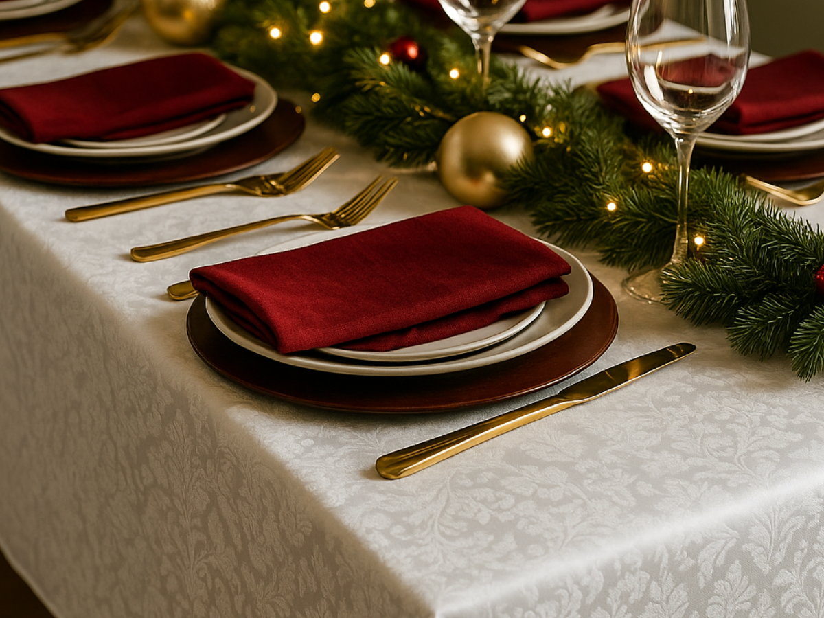 Ну что, готовы к самому энергичному Новому году за последние 12 лет? Потому что 2026-й — это же Огненная Лошадь! А это вам не тихий и уютный год какого-нибудь Кролика. Это про страсть, смелость и полный вперед. Значит, и новогодний стол должен быть не просто красивым, а заряженным, как батарейка «Энерджайзер». Чтобы гости ахали, разговоры кипели, а впечатления были — ого-го! В общем, давайте разбираться, как сделать так, чтобы ваша гостиная на один вечер стала эпицентром огненной энергии. Всё просто: смотрим на символ года. Огонь — это не только кричащий красный. Это целая палитра: от глубокого, почти угольного бордо и терракоты до сочного мандаринового и золотого. Эти цвета — наши главные союзники. Но самый главный секрет? Идеальный фон. Чтобы все эти огненные акценты не подрались друг с другом, им нужна «передышка». И тут идеально сработает белая скатерть. Она как чистый холст для художника — делает цвета сочнее, композицию четче, а стол — стильным, а не просто ярким. Ну, честно го