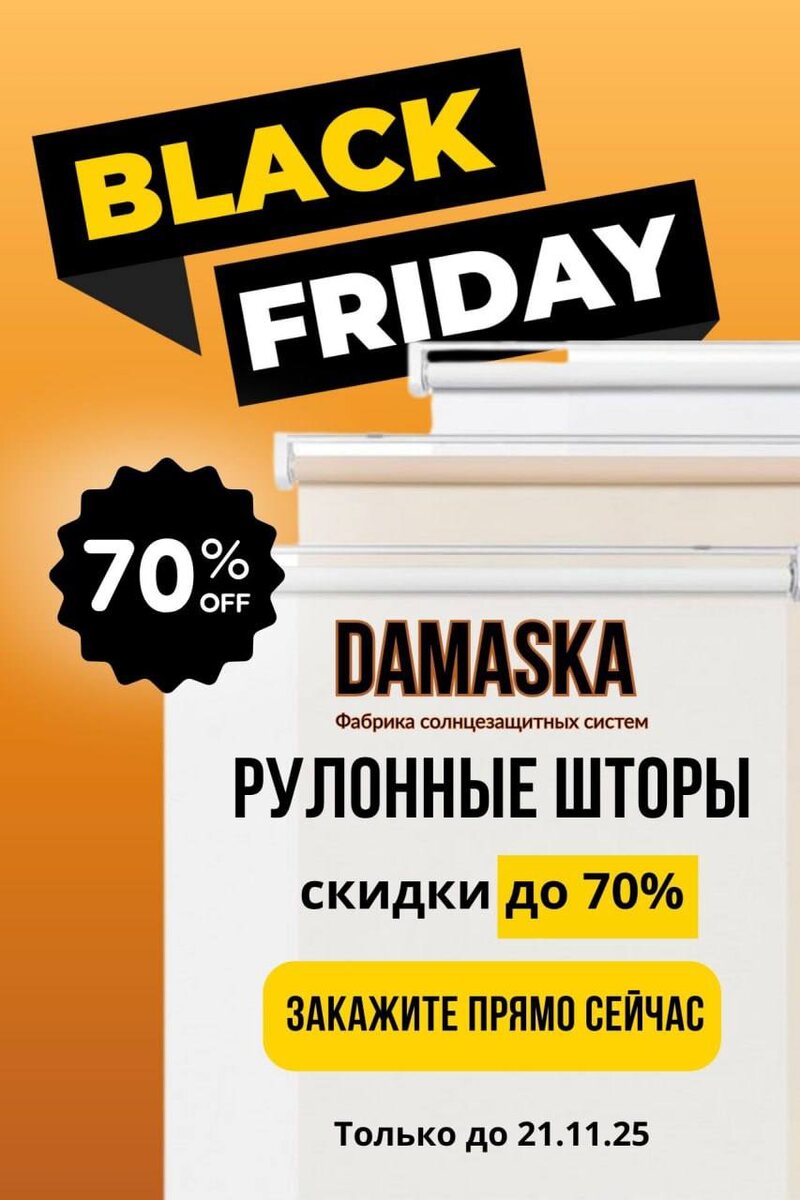 🖤 Черная Пятница в Дамаска! 🖤 Идеальное время обновить интерьер! Только до 21.11: 🔥 Скидки до 70% на рулонные шторы! Сделай свой дом стильным и уютным — при этом сэкономь большую сумму! 📅 Торопись: предложение действует только до 21 ноября! 💡 Выбирай шторы своей мечты в «Дамаска» — комфорт и стиль по суперцене! Пиши ✍️«хочу скидку» @Damaskakrd_bot и мы сделаем просчет изделий🙏 Или звоните по номеру: ☎️ 8(938)411-76-02