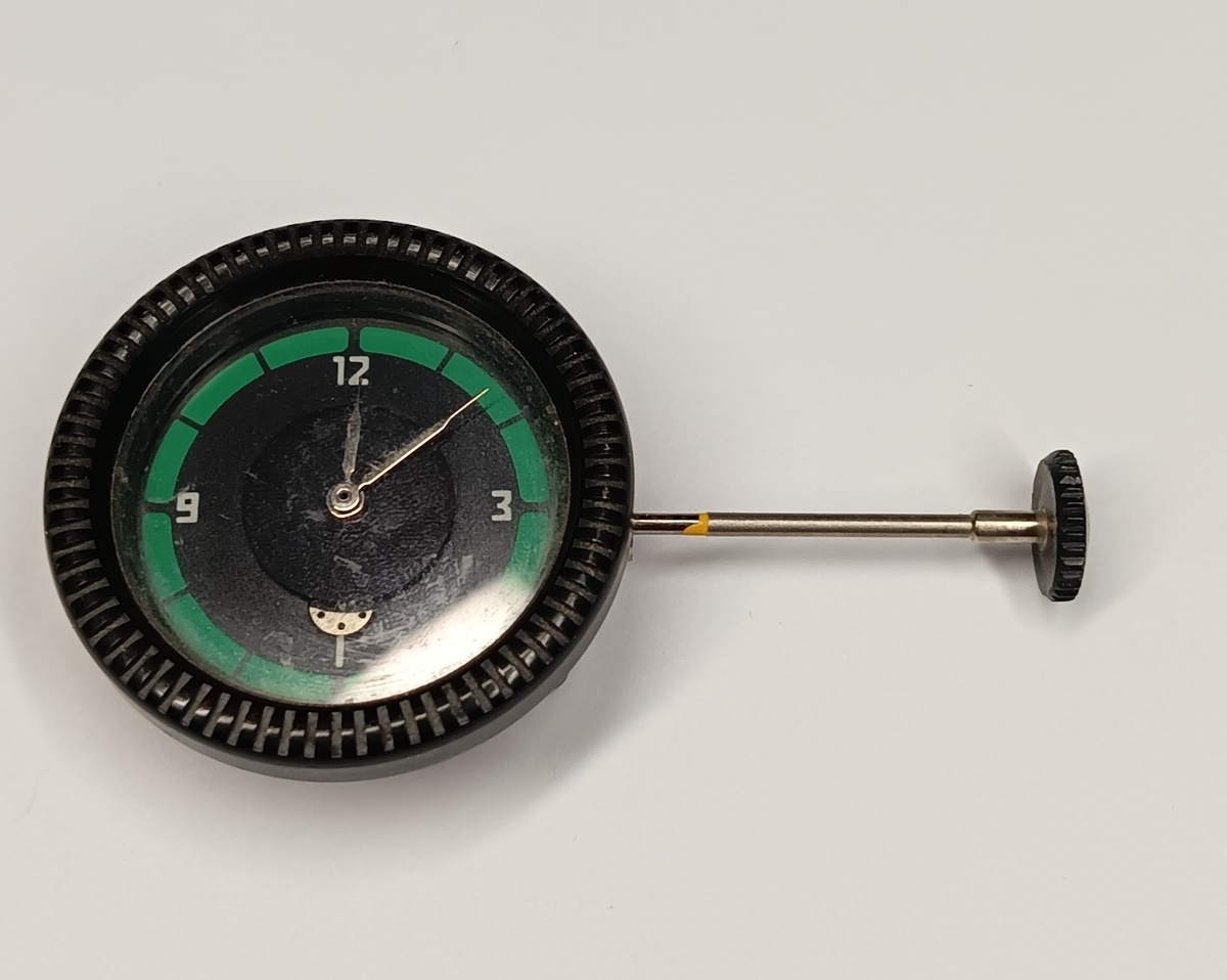 Доброго времени суток! Сегодня буду ремонтировать часы из старого радиоприемника примерно 90-х годов выпуска. Часы были самостоятельно сняты владельцем из своего радио и переданы мне для ремонта. Они стоят, стрелки переводятся. Винты крепления залиты заводским лаком - они не вскрывались. Часы выполняют функцию будильника - есть 2 контакта, при их замыкании в часах включается радио! Начинаю разборку - снимаю внешний ободок, его держит пружинное колечко - напомнило крепление безеля на Командирских. Это кольцо поворотное, именно им устанавливается время срабатывания радио. На циферблате подвижная часть с красной меткой и есть время срабатывания. Снял прозрачный диск вместе с контактами. Извлекаю механизм, как оказалось здесь установлен механизм от Победы 2602. Загустела смазка, колеса стояли мертво, мне показалось, что смазан был механизм "неправильным" маслом. Все детали буду промывать в бензине. После чистки собрал, смазал - ходят отлично. Отрегулировал точность хода. С места ход берут