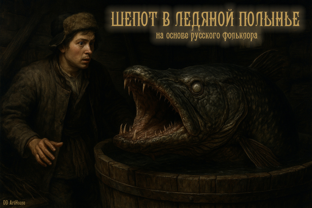 *** Было то время года, когда солнце в этих краях умирало, превращаясь в бледное, выцветшее пятно на свинцовом небосводе. Дни были короткими, как предсмертный вздох, а ночи — долгими, бездонными и полными шорохов, что были похожи не на звук, а на шевеление чего-то незримого под тонкой плёнкой реальности. В избушке на окраине деревни, что тонула в вековых сугробах, жил Емеля. Он не был ленив — он был поражён онемением воли, той самой, что охватывает душу при виде бескрайней, безразличной белизны полей и ледяного, молчащего неба. Однажды, когда мороз сковал даже воздух, превратив его в колющие иглы, пошёл он на реку. Вода подо льдом была не просто чёрной. Она была густой, как смола, и мерцала фосфоресцирующим, зловещим светом, будто в глубине горели подводные города невыразимых существ. Прорубив лунку, он зачерпнул ведро этой тёмной влаги, и вместе с ней в его ведро попала Щука. Но это была не рыба. Её чешуя отливала не серебром, а тусклым металлом древних метеоритов, а глаза были двумя