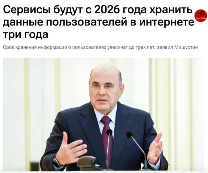 Срок хранения переписок в России увеличен до трех лет — соответствующее постановление подписал председатель правительства Михаил Мишустин. Новые правила вступят в силу с 1 января 2026 года. Под сохранение попадут все виды сообщений: текстовые переписки, аудио- и видеозаписи, включая удаленные материалы. Данная мера призвана упростить работу правоохранительных органов по выявлению нарушителей законодательства. ✈️Севастополь | Мы в MAX📲