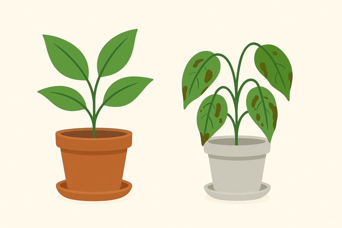 Причина почти всегда одна — переувлажнение. Корни не получают воздуха, начинают гнить, и инфекция быстро распространяется вверх. Что делать: 💡 Мини-совет: если гниль повторяется, проверь дренажные отверстия — возможно, вода просто не уходит Как распознать: