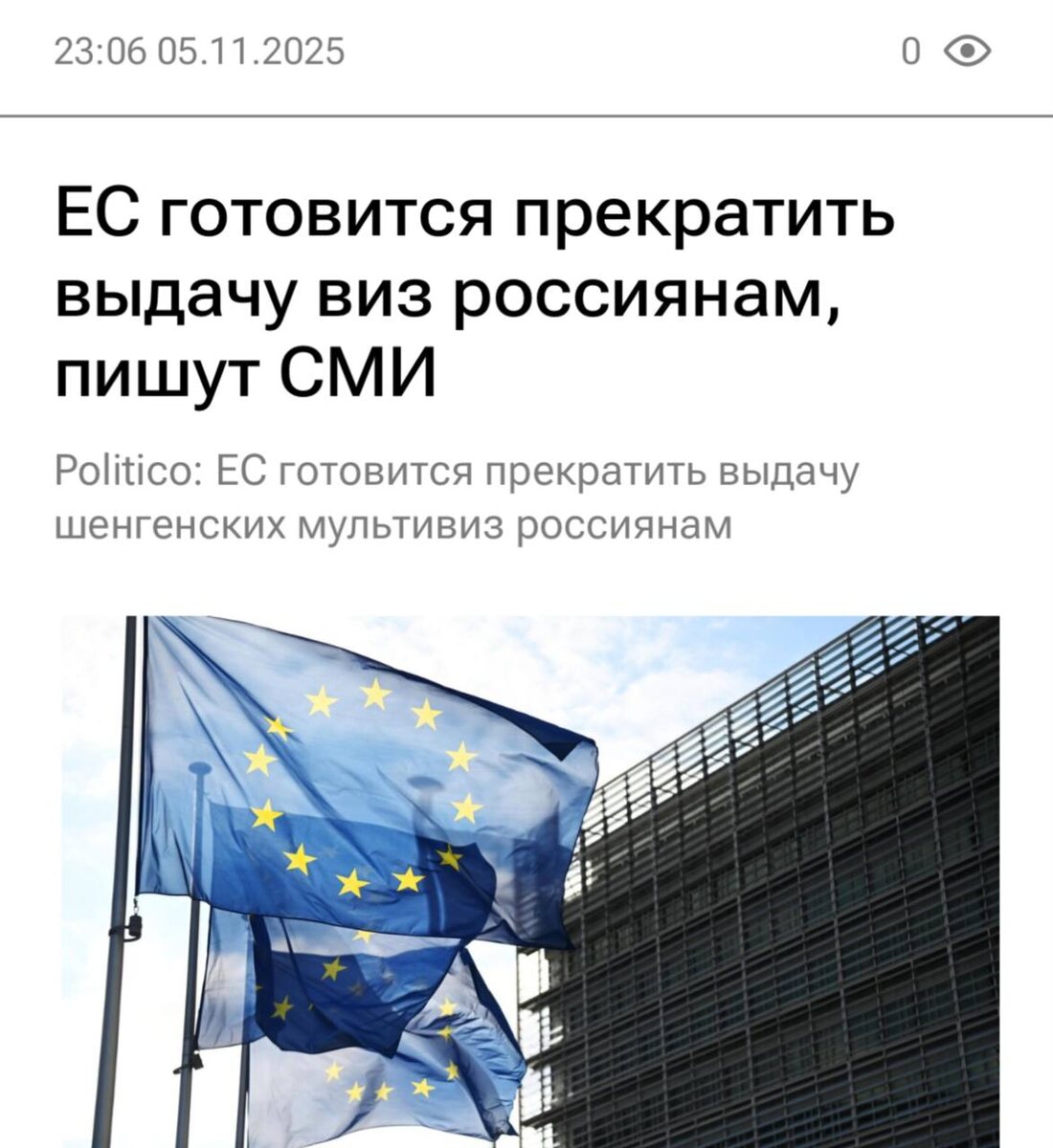 ⚡️Россиянам ПРЕКРАТЯТ выдавать шенгенские визы — новые правила вступят в силу уже на этой неделе, сообщает Politico. Мера коснется мультивиз — их перестанут выдавать «в большинстве случаев». Евротур отменяется 👀 CtrlAltDelights- подписаться