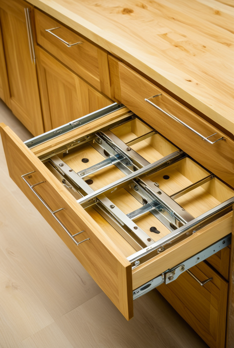 Основное отличие — конструкция и функционал. Роликовые направляющие имеют существенные недостатки: они обеспечивают неполное выдвижение (около 75% глубины), более шумные в работе и имеют невысокую несущую способность. Шариковые направляющие, они же телескопические направляющие, являются системой полного выдвижения. Это их главное преимущество. Благодаря подшипникам они обеспечивают плавный, практически бесшумный ход и выдерживают значительно большую нагрузку на направляющие, что делает их идеальными для кухни или для комода.