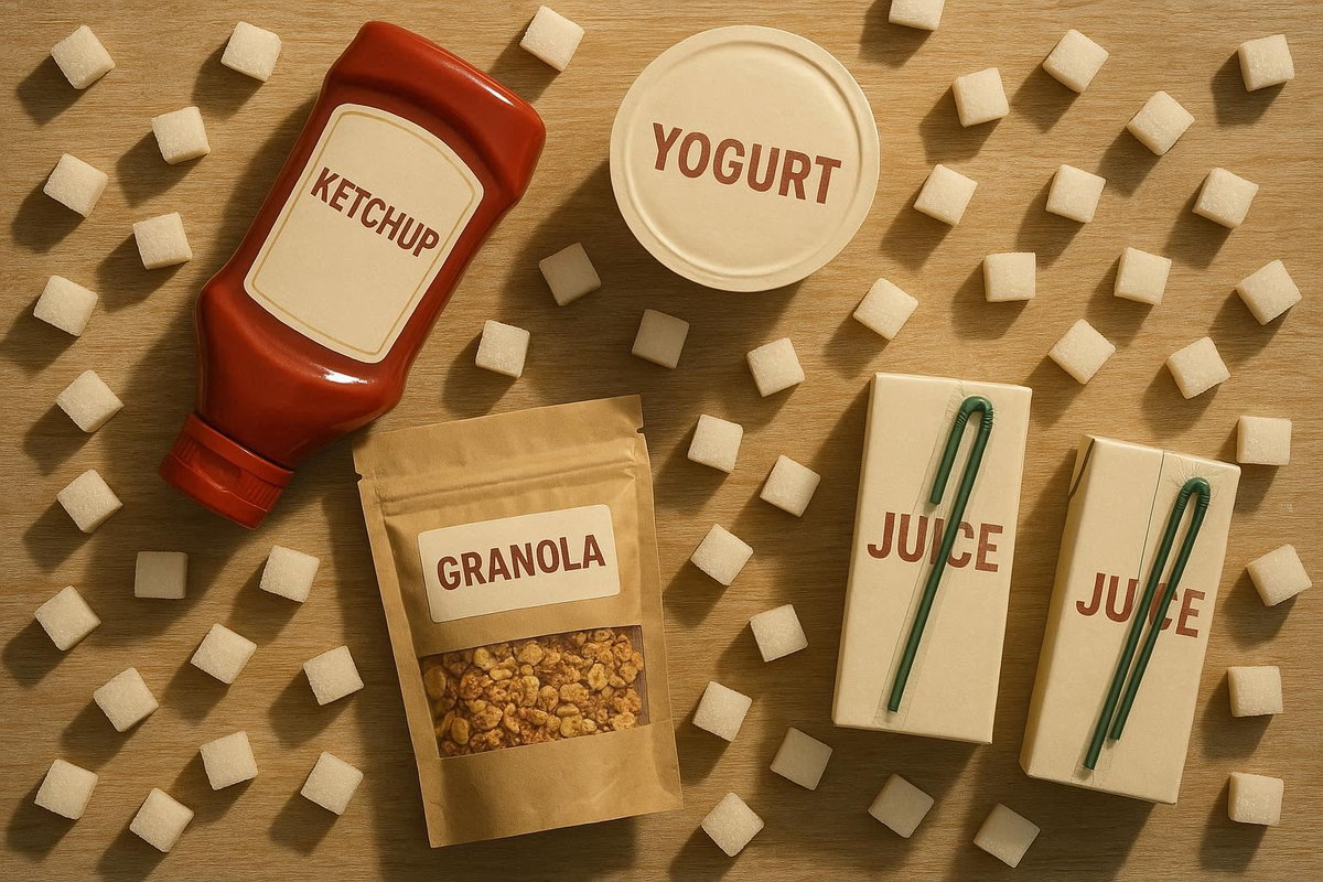 И дело не только в конфетах: сахар прячется в «невинных» продуктах. Например, во фруктах, йогуртах или кетчупе может содержаться много сахара. В продуктах в упаковке сахар может называться фруктозой, декстрозой, мальтозой, кукурузным сиропом и др. – все это углеводы, которые быстро усваиваются и вызывают скачок глюкозы в крови.