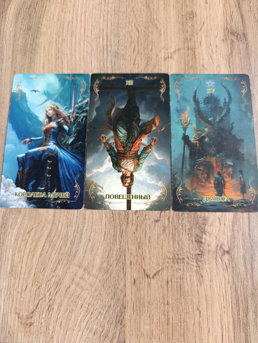 1. Королева Мечей (Кто) Это человек с острым умом, холодной логикой и сильной интуицией. Обычно такая личность — эмоционально сдержанная, может быть критичной и даже жестковатой. Возможно, это женщина или человек с женской энергией, который умеет видеть правду, но при этом не боится быть резким. Эта личность может испытывать обиду, зависть или недовольство именно из-за твоей независимости, честности или успеха. 2. Повешенный (Почему) Причина зла связана с ситуацией, в которой этот человек чувствует себя в подвешенном положении, не может двигаться вперёд или изменить обстоятельства. Возможно, он/она терпит застой, чувствует себя жертвой или ощущает несправедливость. Зависть или злость идут от того, что человек не принимает ответственность за свою жизнь и срывает негатив на тебе. 3. Дьявол (Почему, мотивация) Зло порождено привязанностями, искушениями и внутренними страхами этого человека. Это может быть зависимость (например, от каких-то привычек, негативных эмоций или токсичны