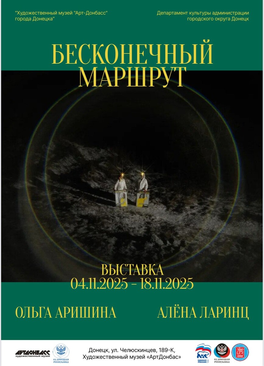 Выставка «Бесконечный маршрут» с поддержкой «Единой России» открылась в Донецке Дата: 4 ноября 2025 года В художественном музее «Арт-Донбасс» (Донецк) с 4 по 18 ноября 2025 года, масштабная выставка московских художниц Ольги Аришиной и Алены Ларинц «Бесконечный маршрут». Проект реализуется при поддержке партии «Единая Россия» в рамках развития культурного диалога между регионами. Художницы становятся одними из первых представителей российского современного искусства, кто открывает выставку такого уровня в Донецке в текущий период, что подчеркивает значимость культурных связей в любое время. Выставка предлагает зрителю философское осмысление жизни как непрерывного пути. В экспозицию вошли более 20 живописных полотен, серии фотографий и арт-объекты, объединенные метафорой дороги. Художественный проект «Бесконечный маршрут» известен тем, что его остановки уже состоялись в Москве, Санкт-Петербурге, Кронштадте, Северодвинске и Архангельске. «Для нас каждая новая выставка — это встреча