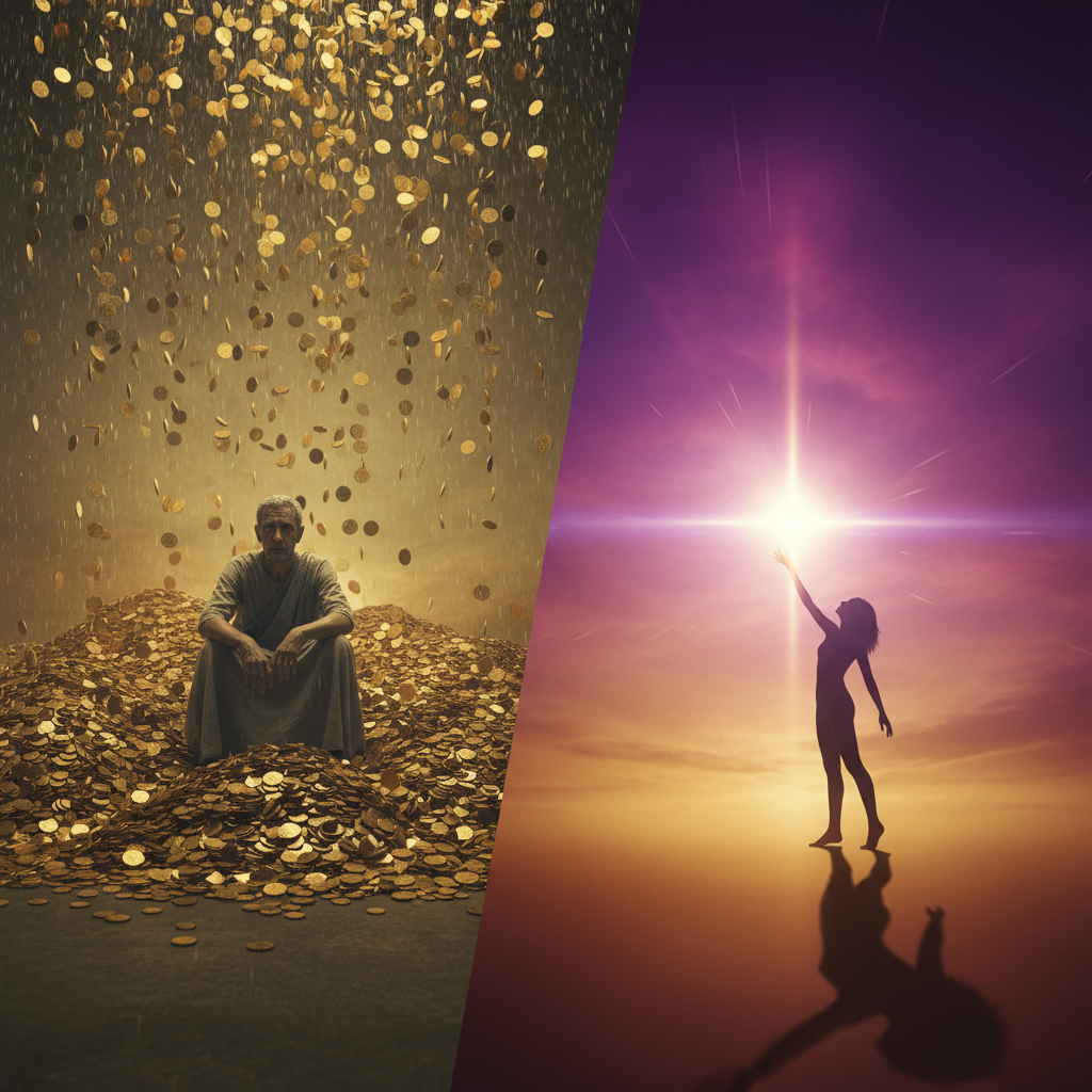 Представь себе: утро, из облаков сыпется чистое золото. Не метафора, не шутка – реальный золотой дождь. Что ты делаешь? Правильно – бросаешь всё и начинаешь собирать. Опустошаешь шкафы, заполняешь подвалы, чердаки, балконы. Люди на улицах дерутся друг с другом за право первыми собрать максимум золота. И это логично, ведь золото – это деньги, это богатство, это решение всех проблем.