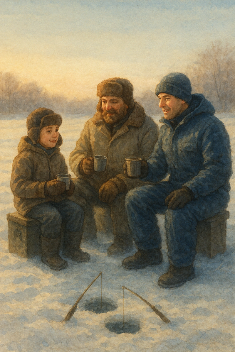 Было это в 2004 году. Тот год особенно запомнился — на зимние каникулы мы всей семьёй поехали в Башкирию, и, конечно же, заехали к бабушке Тасе. Её дом всегда пах пирогами, свежим хлебом и дровами из печки. Я вам уже как-то рассказывал про ту рыбалку на деревенских озёрах, когда я впервые зимой поймал карасей. Так вот, на следующий день после той рыбалки мы с папой Сашей и дядей Андреем решили поехать на озёра в Дубровку — те самые, где раньше с дедушкой Мишей ловили золотых карасей. Может, помните тот рассказ, как у меня тогда крупный карась ушёл прямо из-под носа… Дядя Андрей взял свой старый бур сотку и металлический ящик — в нём лежали дедушкины зимние удочки. Такие сейчас уже нигде не купишь — деревянные ручки, латунные катушки, а на кончике — трепещущий красный кивок. — Ну что, мужики, готовы к рыбалке? — спросил папа, заводя машину. — Конечно! — отозвался дядя Андрей. — Главное, чтобы караси нас ждали. — Они нас дождались ещё с лета, — подмигнул я. Дорога в Дубровку шла через