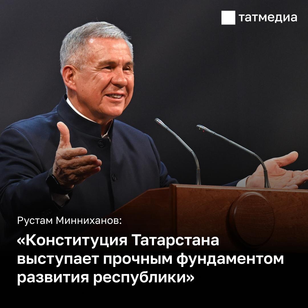 В ответ на пост 🇷🇺👏 Рустам Минниханов поздравил татарстанцев с Днем Конституции РТ Раис Татарстана отметил, что этот важнейший документ был принят после всенародного обсуждения и на стыке эпох стал выражением воли многонационального народа республики, объединил представителей разных политических взглядов, национальностей и вероисповеданий, выступил залогом стабильности. «Сегодня Конституция Татарстана выступает прочным фундаментом социально-экономического и общественно-политического развития республики, правовым и нравственным ориентиром для граждан», – выразил уверенность Раис РТ. Рустам Минниханов добавил, что взаимодействие всех ветвей и уровней власти, поддержка федерального центра и лично Президента России Владимира Путина позволяют Татарстану эффективно реализовывать национальные проекты и республиканские программы, выступать местом проведения крупных международных и всероссийских мероприятий, претворять в жизнь смелые новаторские идеи. «Мы последовательно повышаем качеств