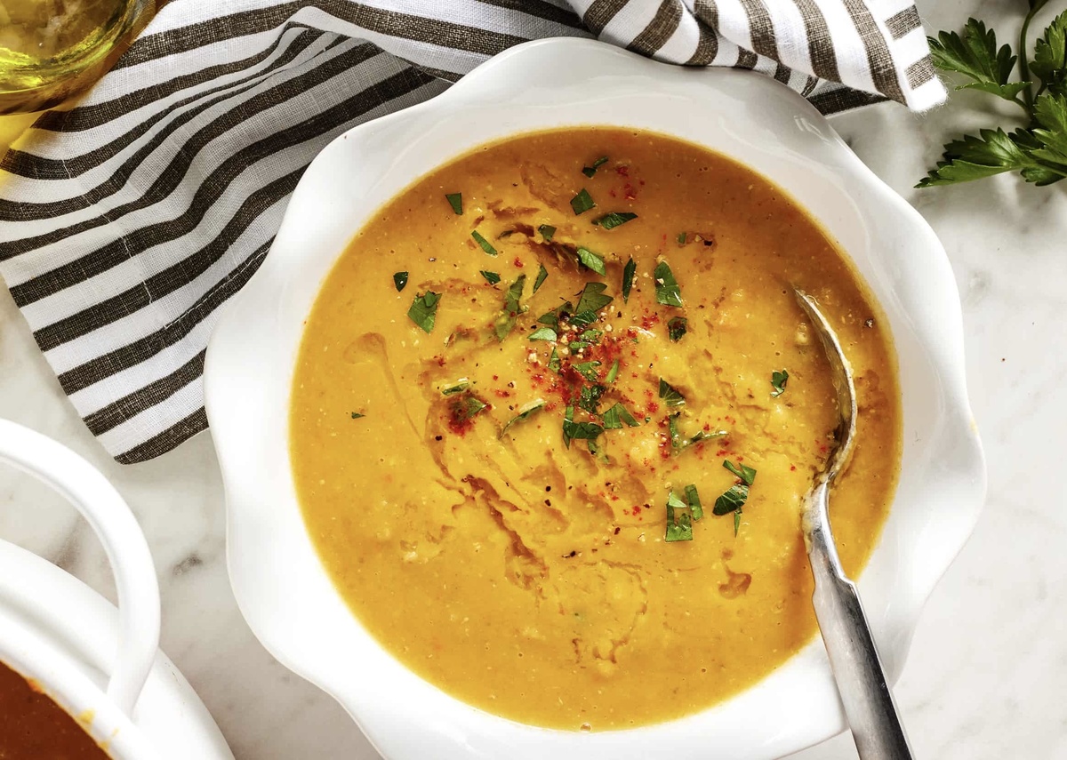 Почему это шедевр: Копченая паприка дает потрясающий аромат «с дымком», а чечевица делает суп очень сытным и богатым белком.