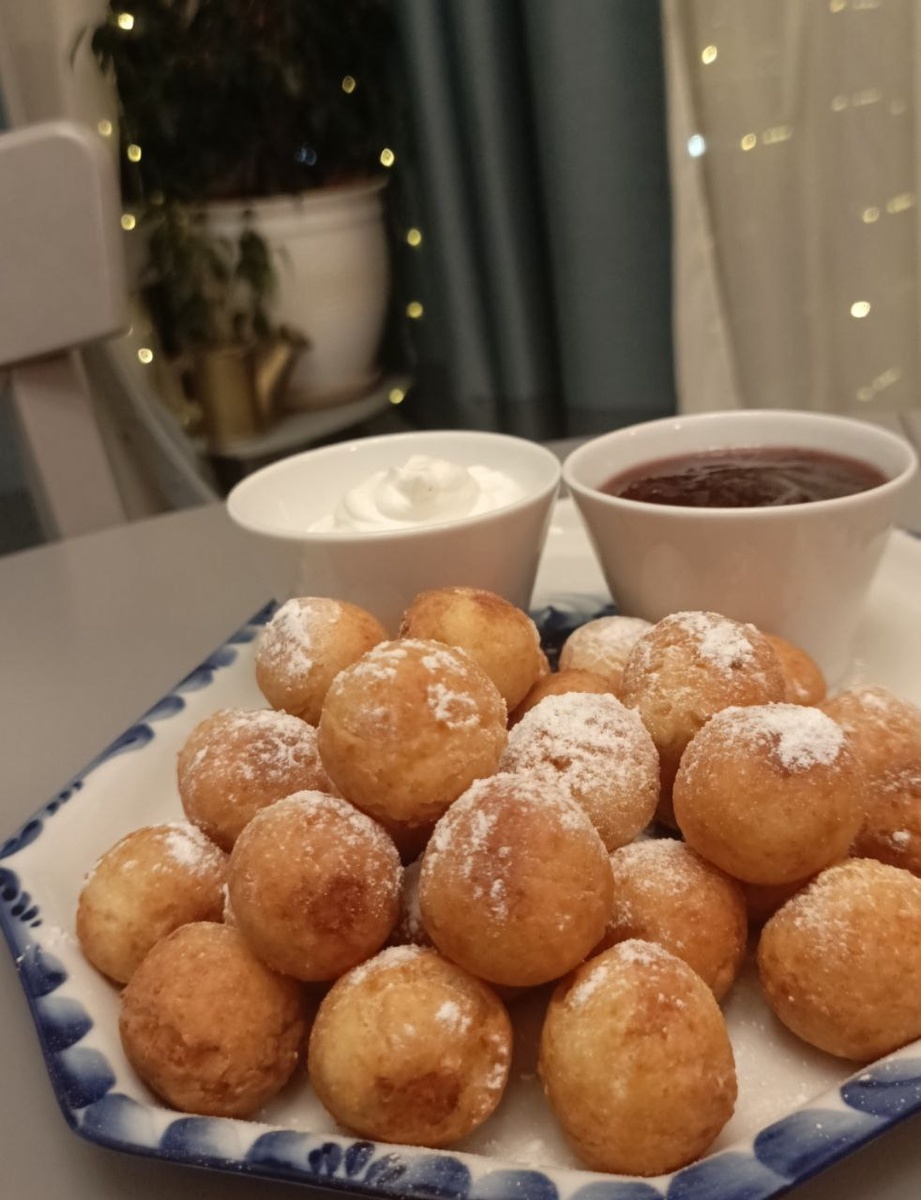 💡ИДЕЯ - На очереди сырные пончики с зеленью - сделать все то же самое, сахар снизить до 0,5 чайной ложки. Добавить 0,5 ч. л. соли, и любимую зелень - укроп/ шпинат/ вяленые томаты/ прованские травы.. Надо поэкспериментировать)) подавать со сметаной/ или с соусом Тартар (на основе фермерского йогурта) 🎉