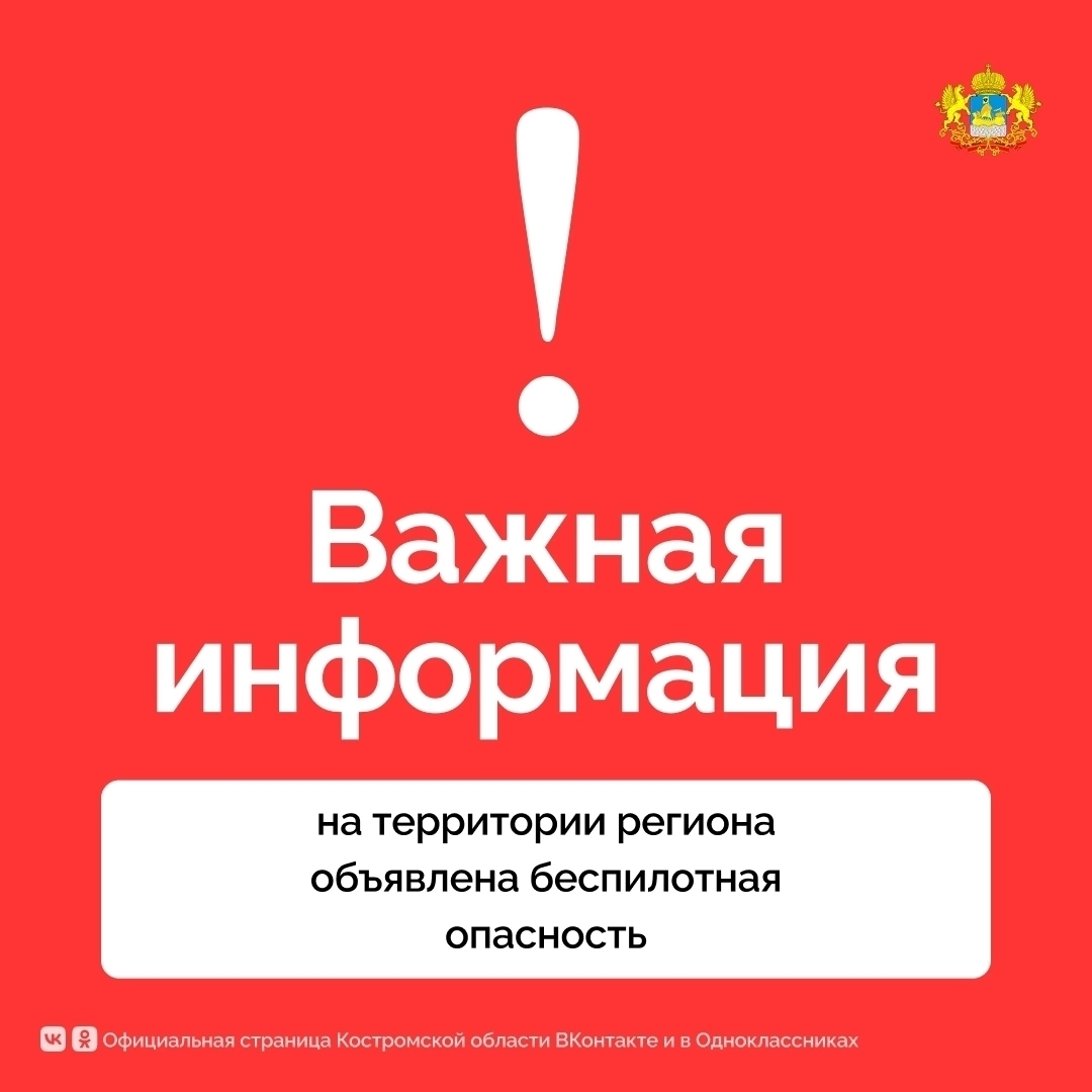 — Если вы находитесь на улице или в автотранспорте, покиньте транспорт. Укройтесь в ближайшем здании. При угрозе – ложитесь на землю, закройте голову руками. На территории региона работают системы ПВО. Ожидайте отбоя беспилотной опасности. Единый номер вызова оперативных служб 112. #КостромскаяОбласть