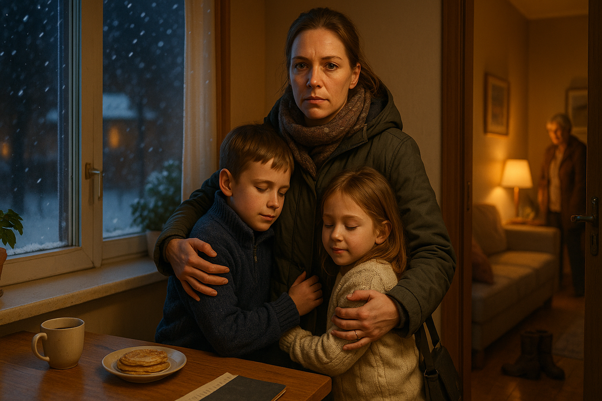 Мишу с Соней привели через неделю. Марина ждала в коридоре, сжимая руки так, что побелели костяшки. Дети прошли мимо, не глядя на неё, — свекровь крепко держала их за руки.