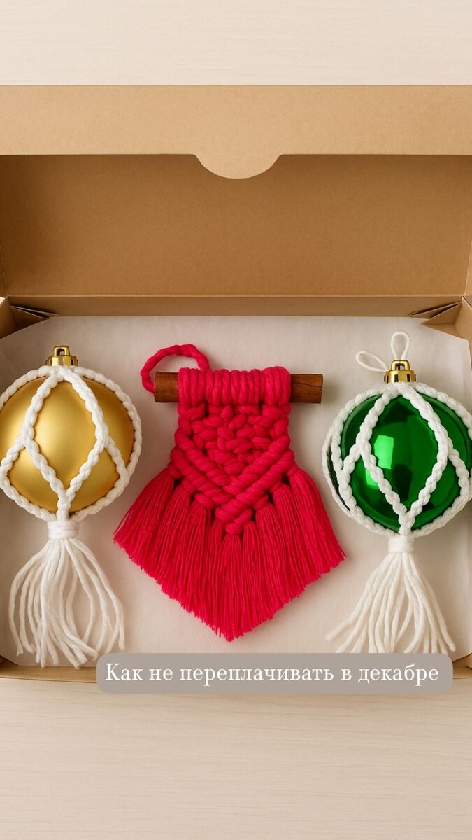 Как не переплачивать в декабре за то, что можно купить уже сейчас. Ты тоже надеяшься на декабрьские распродажи? Но цена наоборот может вырасти, а если и нет, то, то что ты хотела купить уже нет, осталось только какая-то облезлая мишура. Я предлагаю тебе готовиться заранее, это не так ранимо для бюджета и декабрь у тебя пройдет не под лозунгом " всё успеть до Нового года", а спокойно, с ощущением приближающего праздника. Для тебя я создала новогодние наборы " Магия праздника". Что входит в набор: 1. Пластмассовые шарики (при падении не бьётся , можно дать ребёнку)диаметром 6 мм оплетённые хлопковой верёвкой в технике макраме, самые новогодние цвета зелёный, красный, жёлтый ( можно выбрать какие вам нравятся). 2.Мини- панно на палочке корицы из хлопковой верёвки, цвета белый и ярко-розовый ( цвета тоже можно выбрать). Для чего он тебе. Им можно украсить ёлку, комнату, офис. Подарить подруге, маме, коллеге или родственникам. Набор состоит из 3 штук. Цена 1500₽ + доставка оплачива