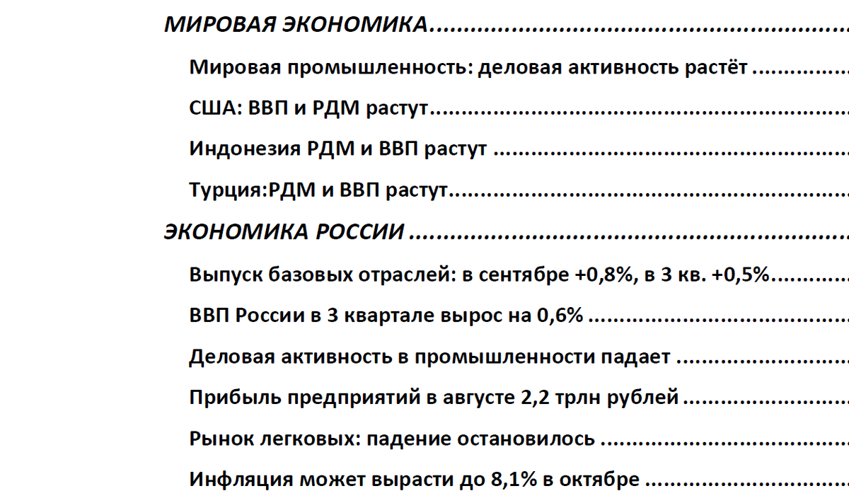 - По предварительной оценке Минэкономразвития, ВВП в 3 квартале вырос на 0,6% (Росстат выдаст данные 14 ноября)
