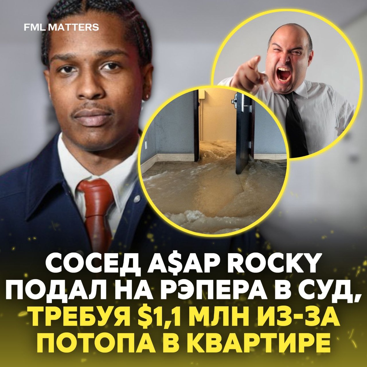 💦 A$AP ROCKY ЗАТОПИЛ КВАРТИРУ СОСЕДА! Сосед рэпера подал на него в суд и требует $1,1 миллиона. По его словам, во время ремонта в квартире Рокки прорвало трубы с горячей водой, и вся его квартира затопилась. Теперь мужчина обвиняет Рокки и рабочих в халатности — из-за них его жильё стало непригодным для жизни. 💀 FML MATTERS