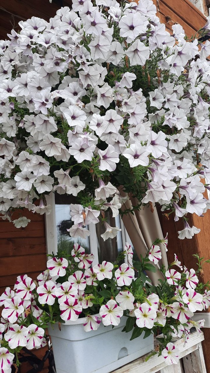 Сегодня познакомлю, но уже более подробно с петунией Tidal Wave (Тайдал Вэйв).🔥🔥🔥 Я перечислю все преимущества ТАЙДАЛОВ в сравнении с обычной петунией. А вы делайте выводы‼️ Чем же она замечательна⁉️ Давайте по пунктам: Это не петуния. Это — «ПЕТУНИЯ ТЯЖЕЛОВЕС». В хорошем смысле этого слова! У нее другой тип роста. Наши обычные петунии растут кустиками или свисают вниз, Tidal Wave ведет себя непредсказуемо. Хотите живую изгородь? Она вырастет ВВЕРХ, цепляясь за соседние растения. Нужен цветущий ковер? Она расползется вШИРЬ, покрывая землю сплошным покровом. Мечтаете о шаре? Она сформирует огромную, плотную цветущую полусферу. Одно и то же растение — и три абсолютно разных варианта для вашего сада. Это и есть ее главная магия — пластичность. У Tidal Wave «спортивная» форма. Представьте, обычные петунии — это милые и спокойные, а Tidal Wave — это марафонец. Ее стебли не ломаются от ветра, цветы не боятся летнего ливня, а засуху она переносит стойко. Вы можете спокойно уехать