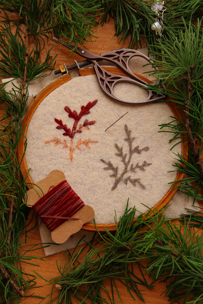 Эскиз этой веточки давно лежал у меня на столе, и было много идей, как именно его воплотить. Изначально я отталкивалась от идеи листа папоротника, но по факту это больше похоже на лист цинерарии. Здесь я решила попробовать вышить его гладью сплошной заливкой, используя нить с переходом. Правда, получился не самый удачный выбор, потому как это покупная нить, и здесь слишком резкие переходы и большие секции окрашивания. Думаю, этот вариант я всё же закончу ради эксперимента, но в будущем повторю данный эскиз в более плавных и сдержанных вариациях. Есть у меня несколько наборов бисера, где подобран микс различных форм и размеров в определённой цветовой гамме. Эти наборы давно манят меня пустить их в дело так, чтобы на основе было также красиво, как в баночке. На деле это оказалось также ярко и волшебно, как я и представляла, и было так сложно остановиться его пришивать! Мне срочно нужно 48 часов в сутках или пара дополнительных рук, потому что я знаю ещё 100500 идей, куда можно применить