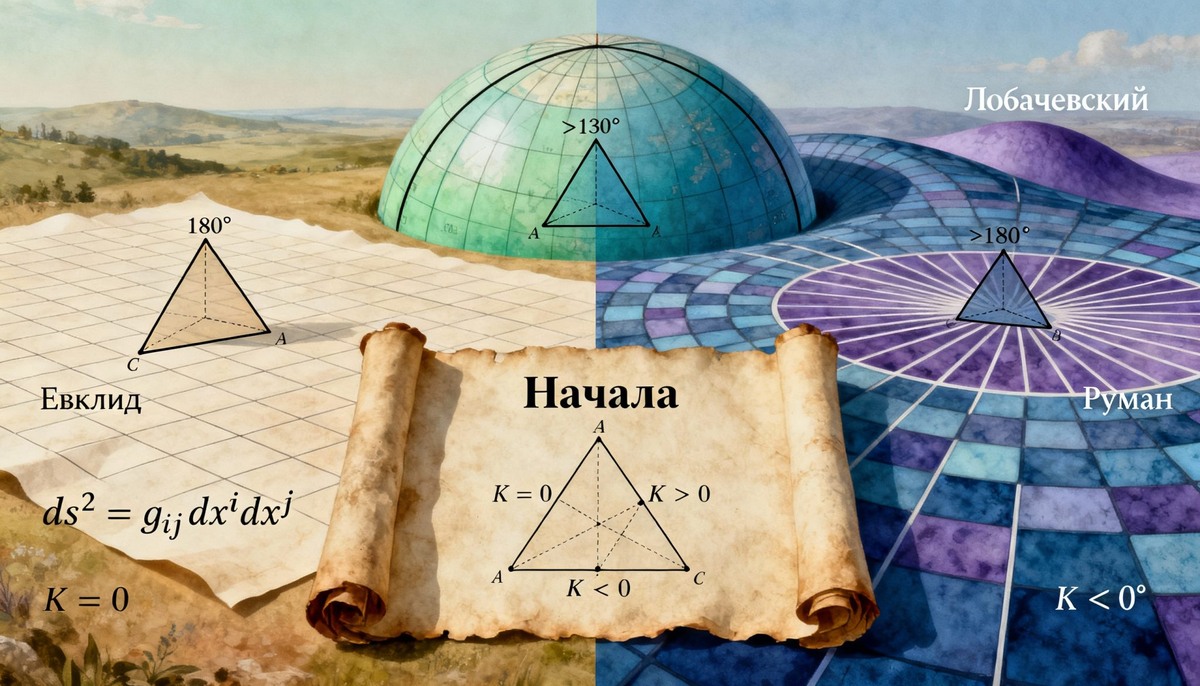 Более двух тысячелетий человечество было уверено, что геометрия — это нечто незыблемое и абсолютное. Треугольники всегда имеют сумму углов в 180 градусов, параллельные прямые никогда не пересекаются, а кратчайший путь между двумя точками — это прямая линия. Эти истины казались настолько очевидными, что философы считали их частью самой структуры человеческого разума. Однако история науки полна моментов, когда то, что казалось незыблемым, рассыпается под натиском новых открытий. Одним из таких моментов стало осознание того, что евклидова геометрия — лишь один из возможных способов описания пространства.