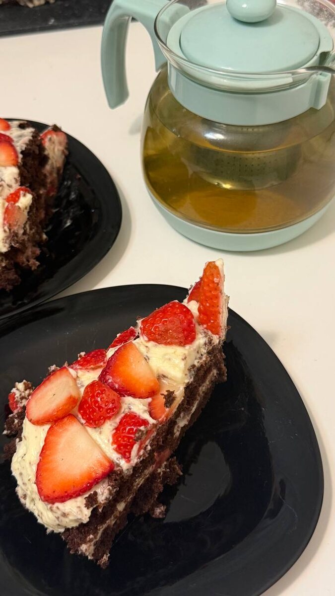 6 ноября. Снег лёг, а печку топим раз в сутки, тепло дома, а на улице всего лишь минус 10 градусов. Захотелось чего-нибудь к чаю вкусного и домашнего. Решила я испечь тортик черный принц с клубникой. Рецепт черного принца у меня проверенный годами, еще от бабушки достался. Конечно, с некоторыми моими корректировками, но суть та же – шоколадный бисквит, пропитанный сметанным кремом и кисло-сладкая клубничная прослойка. Достала из морозилки мешочек домашней клубники, заботливо замороженной еще летом. Аромат от нее – словно вернулся в июль, в тепло и солнце. Замесила тесто – какао, мука, яйца, сметана. Все как по нотам, движения отточены до автоматизма. Пока духовка разогревается, нарезала клубнику. Решила добавить немного лимонной цедры в крем – для пикантности и свежести. Форму для выпечки смазала маслом и присыпала какао, чтобы корж легко отделился. Бисквит поднялся пышный и ароматный. Разрезала его на два коржа, пропитала сладким сиропом. Сметанный крем получился густым и нежным. На о