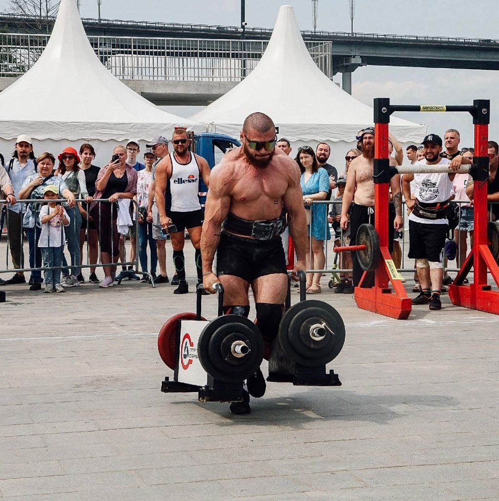 На чемпионате по силовому экстриму в Сочи богатырь успешно справился со всеми четырьмя из предложенных заданий – за минуту 11 раз поднял 90-килограммовое богатырское бревно, выполнил упражнения «прогулку фермера» и «коромысло», а также становую тягу с 200-килограммовым весом с результатом 18 раз за минуту.