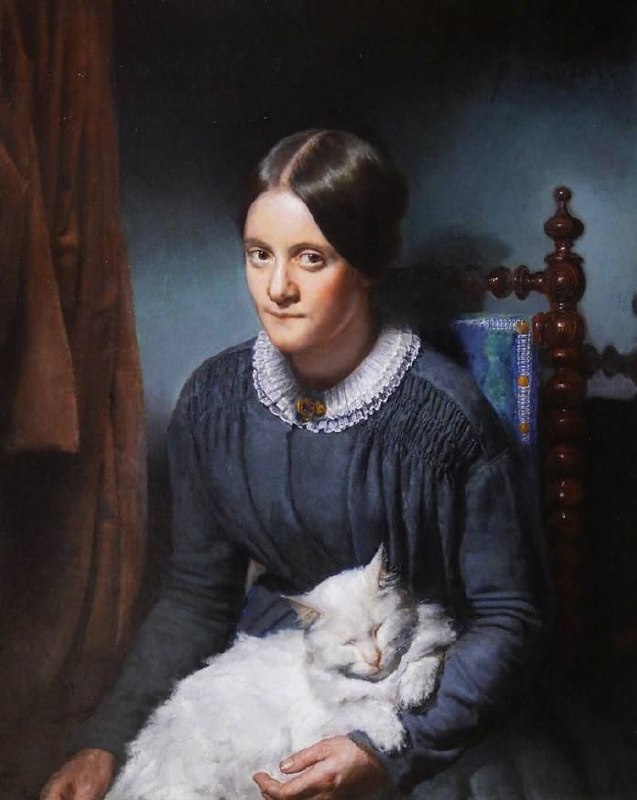 Темно за окном, но вставать надо... но не всем... 👀 Феликс Трюта, Девушка с котом 1840 Кот Пикассо