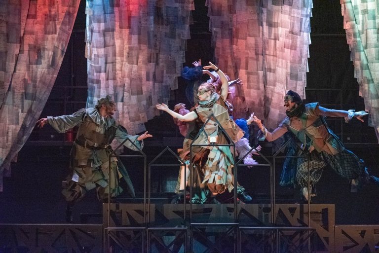 Для декораций «Ворона» в областном театре кукол изготовили 5000 отрезков ткани с текстом пьесы