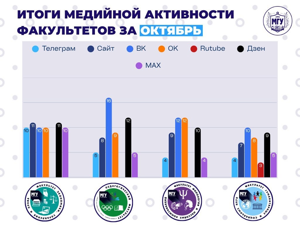 π€© ΠΡΠΎΠ³ΠΈ ΠΌΠ΅Π΄ΠΈΠΉΠ½ΠΎΠΉ Π°ΠΊΡΠΈΠ²Π½ΠΎΡΡΠΈ ΡΠ°ΠΊΡΠ»ΡΡΠ΅ΡΠΎΠ² Π·Π° ΠΎΠΊΡΡΠ±ΡΡ! π€© ΠΠΊΡΡΠ±ΡΡ ΡΡΠ°Π» ΠΌΠ΅ΡΡΡΠ΅ΠΌ Π²ΡΡΠΎΠΊΠΎΠΉ Π°ΠΊΡΠΈΠ²Π½ΠΎΡΡΠΈ. Π€Π°ΠΊΡΠ»ΡΡΠ΅ΡΡ ΡΠ΅Π³ΡΠ»ΡΡΠ½ΠΎ ΠΏΡΠ±Π»ΠΈΠΊΠΎΠ²Π°Π»ΠΈ Π½ΠΎΠ²ΠΎΡΡΠΈ ΠΈ Π΄Π΅Π»ΠΈΠ»ΠΈΡΡ ΡΠΎΠ±ΡΡΠΈΡΠΌΠΈ, Π° ΡΡΡΠ΄Π΅Π½ΡΡ ΠΏΠΎΠ΄Π΄Π΅ΡΠΆΠΈΠ²Π°Π»ΠΈ ΠΏΡΠ±Π»ΠΈΠΊΠ°ΡΠΈΠΈ ΡΠ΅Π°ΠΊΡΠΈΡΠΌΠΈ. Π Π΅Π·ΡΠ»ΡΡΠ°ΡΡ ΠΎΠΊΡΡΠ±ΡΡ ΠΏΠΎ ΠΊΠΎΠ»ΠΈΡΠ΅ΡΡΠ²Ρ ΠΏΠΎΡΡΠΎΠ²: 1οΈβ£ ΠΌΠ΅ΡΡΠΎ β π€© ΡΠ°ΠΊΡΠ»ΡΡΠ΅Ρ ΡΠΊΠΎΠ½ΠΎΠΌΠΈΠΊΠΈ, ΡΠΏΡΠ°Π²Π»Π΅Π½ΠΈΡ ΠΈ ΠΏΡΠ°Π²Π° 2οΈβ£ ΠΌΠ΅ΡΡΠΎ β π€© ΠΏΠ΅Π΄Π°Π³ΠΎΠ³ΠΈΡΠ΅ΡΠΊΠΈΠΉ ΡΠ°ΠΊΡΠ»ΡΡΠ΅Ρ 3οΈβ£ ΠΌΠ΅ΡΡΠΎ β π€© ΡΠ°ΠΊΡΠ»ΡΡΠ΅Ρ ΡΠΈΠ»ΠΎΠ»ΠΎΠ³ΠΈΠΈ ΠΈ ΠΌΠ°ΡΡΠΎΠ²ΡΡ