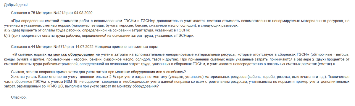От читателя канала на email поступил следующий вопрос: Ответ на поставленный вопрос однозначен 🔥 - затраты на вспомогательные ненормируемые материальные ресурсы в размере 2% от оплаты труда рабочих-строителей учитываются непосредственно в локальных сметных расчетах. Но давайте пошагово: 📌 Шаг 1 - мы разрабатываем сметную документацию только с применением сметных нормативов, включенных в ФРСН. Такое правило нам установлено статьей 8.3 "Ценообразование и сметное нормирование в области градостроительной деятельности" главы 2.1 "Ценообразование и сметное нормирование в области градостроительной деятельности, федеральный реестр сметных нормативов" Градостроительного кодекса РФ 📌 Шаг 2 - сметные нормативы это ГЭСН и методики, при чем методики не только по определению сметной стоимости строительства, но и методики разработки (приказ МСРФ от 18.07.2022 № 577/пр) и применения сметных норм (приказ МСРФ от 14.07.2022 № 571/пр): Это определение термина "сметные нормативы" также установлено Гра