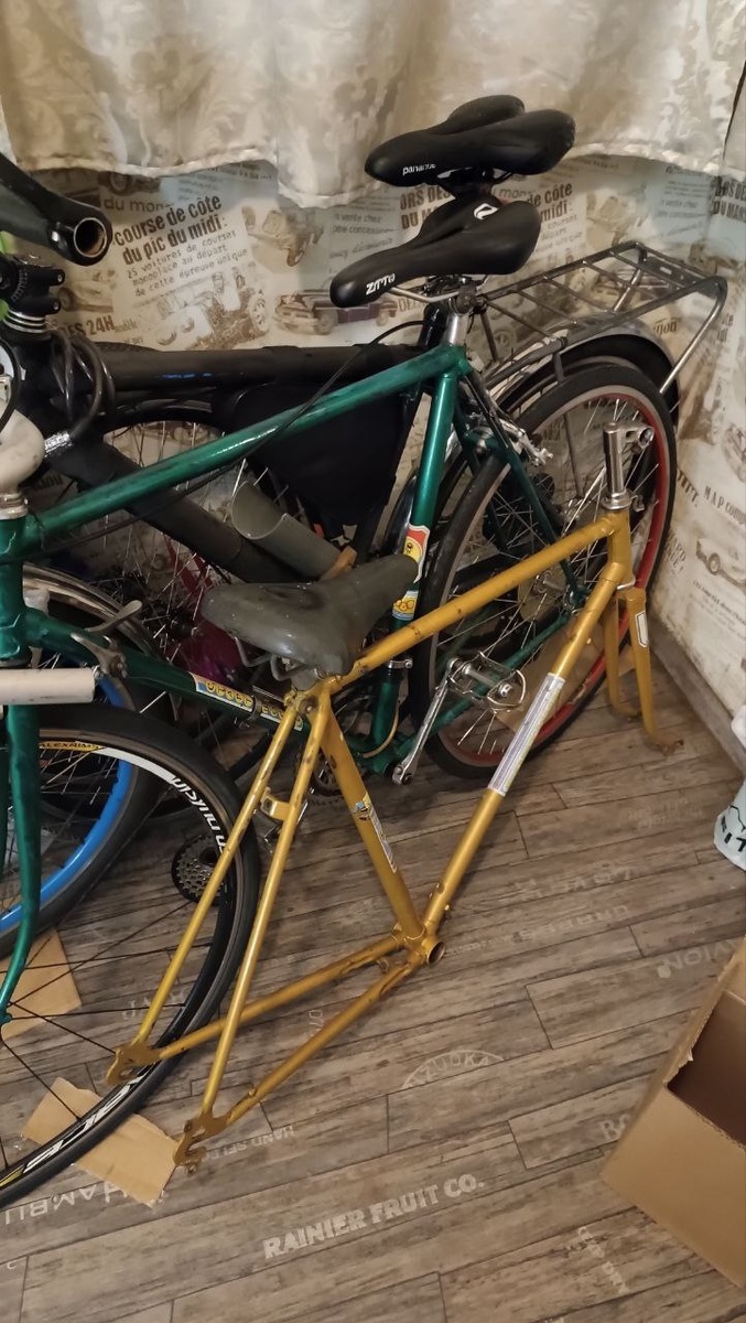 Процесс идёт. Заказал почти все запчасти которые хотел. Ждать месяц из Китая. Рама кривая. Это с завода так. Зелёный тоже кривой был. Задняя вилка не соосна раме. Передняя звезда с перекосом стояла и "линия цепи" выходила на скоростные звёзды. Дропауты смещены более 1 см от оси влево. Видна глазами неровность рамы. Перекос идет от места сварки под сиденьем. То есть, она не согнута, а сварена так. Может оно так и задумано. Но почему-то я сомневаюсь. Когда придут запчасти, буду пробовать ровнять.