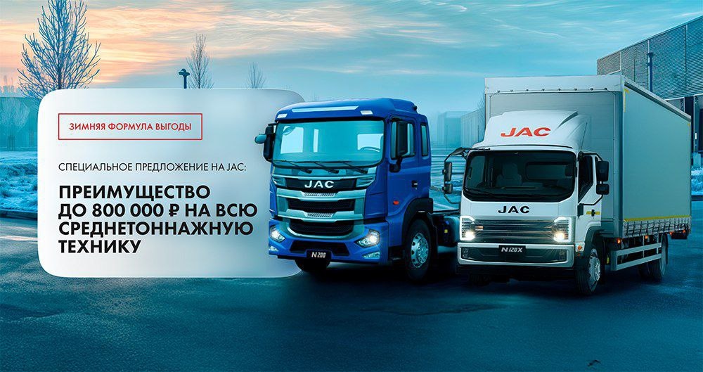 Зимняя формула выгоды Специальное предложение на JAC: преимущество ДО 800 000 ₽! ООО «ДЖАК Автомобиль» запускает уникальную программу ЗИМНЯЯ ФОРМУЛА ВЫГОД, которая предоставляет клиентам специальные условия позволяющие приобрести коммерческую технику JAC на лучших условиях. ▪️субсидия от производителя в размере до 500 000 рублей ▪️сертификат на сервисное обслуживание: 4 или 6 бесплатных ТО Программа распространяется на модели JAC N90, N120, N200. ЗИМНЯЯ ФОРМУЛА ВЫГОДЫ позволяет вам обновить и/или расширить парк техники, сделав выбор в пользу нового автомобиля JAC с гарантией от производителя и сервисной поддержкой. Сроки действия программы с 01.11.2025 по 30.11.2025. ❗Подробности на сайте bigmachine.pro или у менеджеров: 88007001509