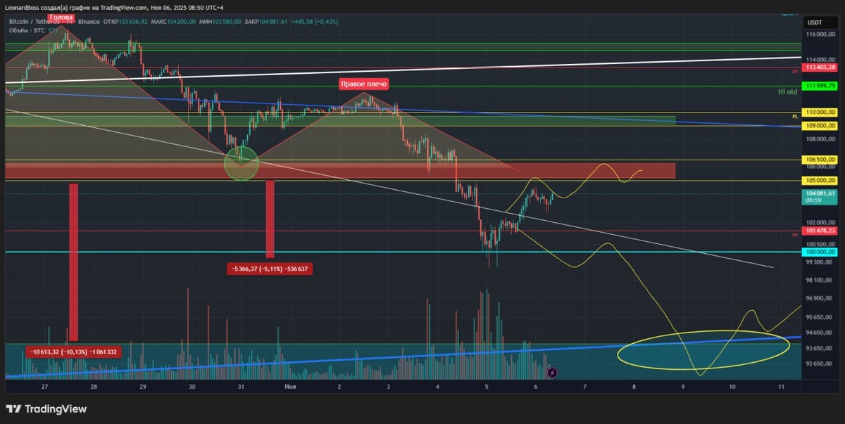В ответ на пост #мнениепорынку 🕯🕯🕯 ⚠️Локальный сценарий в действии, наблюдаем логический отскок и движение в сторону блока, теперь уже сопротивления! И локальный, и среднесрочный сценарий будет иметь продолжение роста только после выхода цены на блок!! ⚠️Таким образом, если цена получит сопротивление от блока, что скорее произойдет, как минимум 1-2 раза, то на ближайшую среднесрочную перспективу можем получить боковик, с границами 106К и 100К = что было бы Мега лучшим сценарием для альты! Сегодня ожидаю продолжение отскока альтов с промежуточными откатами = самое нелюбимое движение для трейдеров = уничтожение стопов!! P.s. и снижение, и рост, как правило происходят после 2-3 ретестов уровней HI или Low, соответственно жду болтанку в указанном диапазоне еще пару дней. Выход за любую границу и закреп старшим ТФ = укажет дальнейшее направление движения цены!! График доминации BTC понемногу сбавил ход и в среднесроке формирует разворотный диапазон после ретеста и закрытия открытых