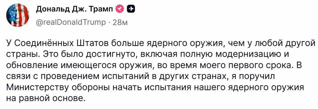 ☢️ Трамп приказал Пентагону возобновить ядерные испытания США – первая такая инициатива за 33 года