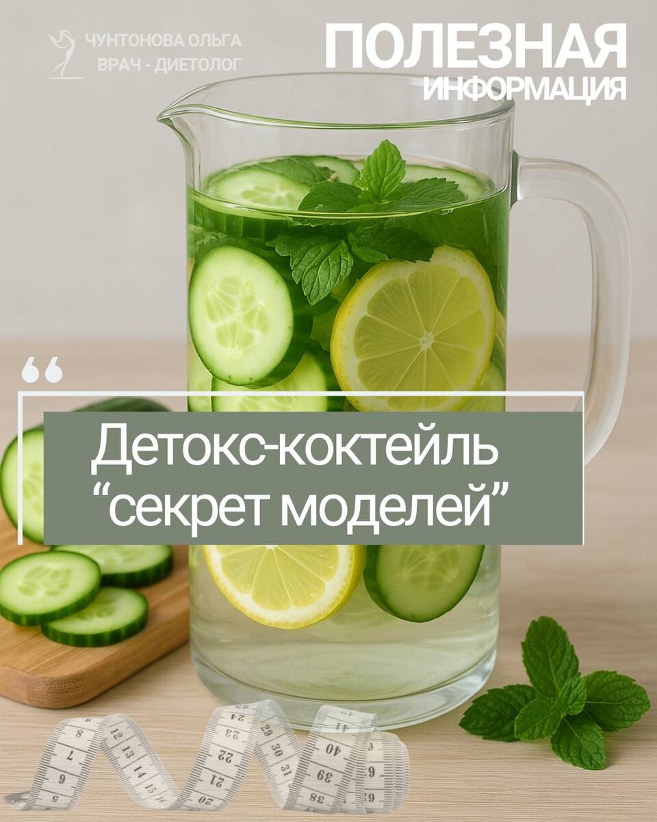 Детокс-коктейль «секрет моделей». В комментариях в канале оставляю вам рецепт -> https://dzen.ru/id/63ecf90cdab4e7234fa38941 Простой, вкусный и эффективный способ запустить мягкий дренаж организма! Этот напиток не только освежает, но и помогает вывести лишнюю жидкость, поддерживает работу почек и улучшает обмен веществ. Польза: Уменьшает отёки и тяжесть в теле Улучшает пищеварение Поддерживает здоровую работу печени Заряжает энергией и очищает кожу Насыщает организм антиоксидантами Состав: вода, огурец, лимон, мята и немного имбиря Противопоказания: Язвенные болезни желудка или гастрит в стадии обострения Аллергия на цитрусовые или имбирь Серьёзные заболевания почек (проконсультируйтесь с врачом) Беременность и грудное вскармливание — по согласованию с врачом Если противопоказаний нет — обязательно сохраните этот рецепт! Пейте такой коктейль курсом 5–7 дней, особенно в жару или после праздников и солёной пищи — эффект почувствуете уже через пару дней. Делитесь с подругой — пус
