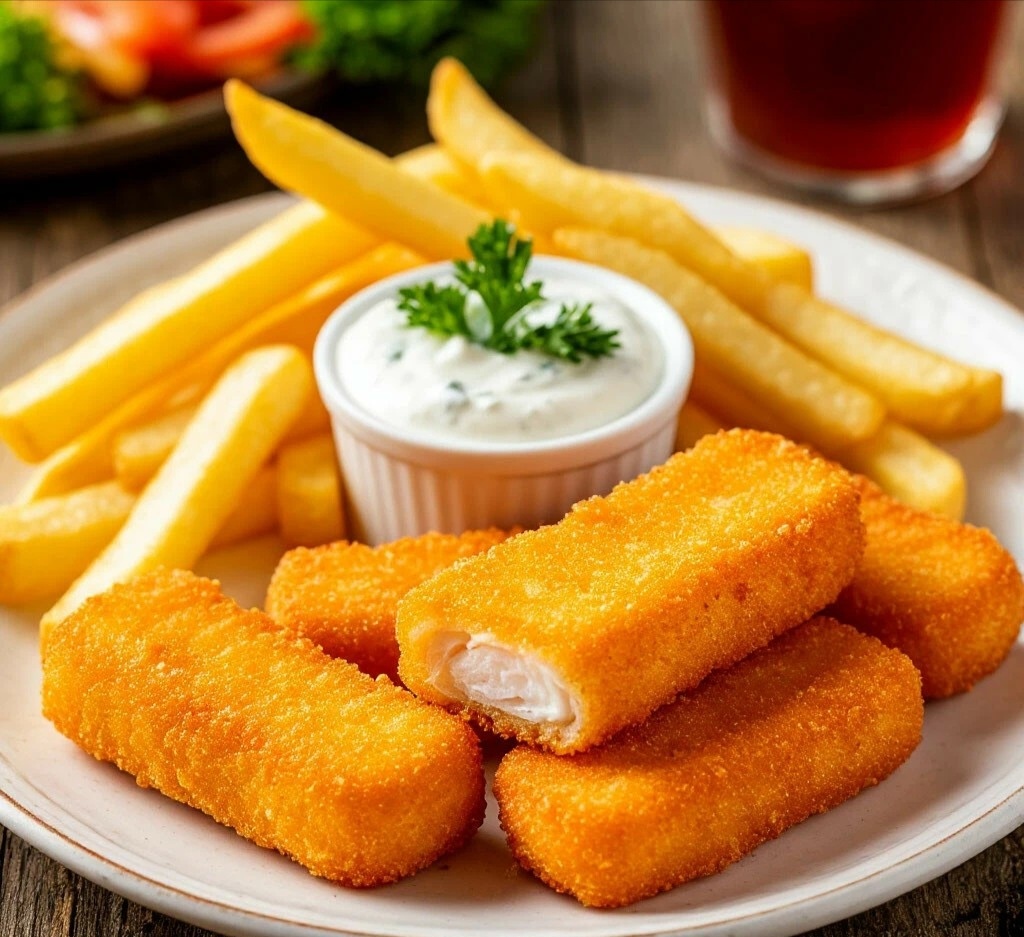 ДЕТСКИЙ УГОЛОК — РЫБНЫЕ ПАЛОЧКИ ИЗ ФИЛЕ С КАРТОФЕЛЕМ ФРИ И ТРАВАМИ Мяу, мои пушистые родители! 😺 Готовим для наших маленьких котят блюдо, от которого они не смогут отказаться! Хрустящие рыбные палочки в кукурузной корочке и ароматный картофель фри с травами! Это полезно, вкусно и дети съедают всё без капризов! 🐟🍟👶 РЫБНЫЕ ПАЛОЧКИ ИЗ ФИЛЕ С КАРТОФЕЛЕМ ФРИ И ТРАВАМИ ИНГРЕДИЕНТЫ ДЛЯ РЫБНЫХ ПАЛОЧЕК: 🧾 ·Филе белой рыбы (треска, пикша): 500 г ·Кукурузные хлопья: 100 г ·Кукурузная мука: 2 ст.л. ·Яйцо: 1 шт. ·Сушеный укроп: 1 ч.л. ·Соль по вкусу ·Растительное масло ИНГРЕДИЕНТЫ ДЛЯ ГАРНИРА: 🧾 ·Картофель фри замороженный: 400 г ·Сушеный розмарин: 1 ч.л. ·Чеснок молотый: ½ ч.л. ДЛЯ СОУСА: 🧾 ·Майонез: 150 г ·Маринованные огурчики: 2 ст.л. (мелко нарезанных) ·Лимонный сок: 1 ч.л. ·Рассол от огурцов: 1 ч.л. ВРЕМЯ ПРИГОТОВЛЕНИЯ: ⏰ 30 минут СЛОЖНОСТЬ:🐾 Справится любой родитель ПОШАГОВЫЙ РЕЦЕПТ: 👩🍳 1. Духовку разогреть до 200°C. 🔥 2. Картофель фри: Выложить на противень, посыпать розм