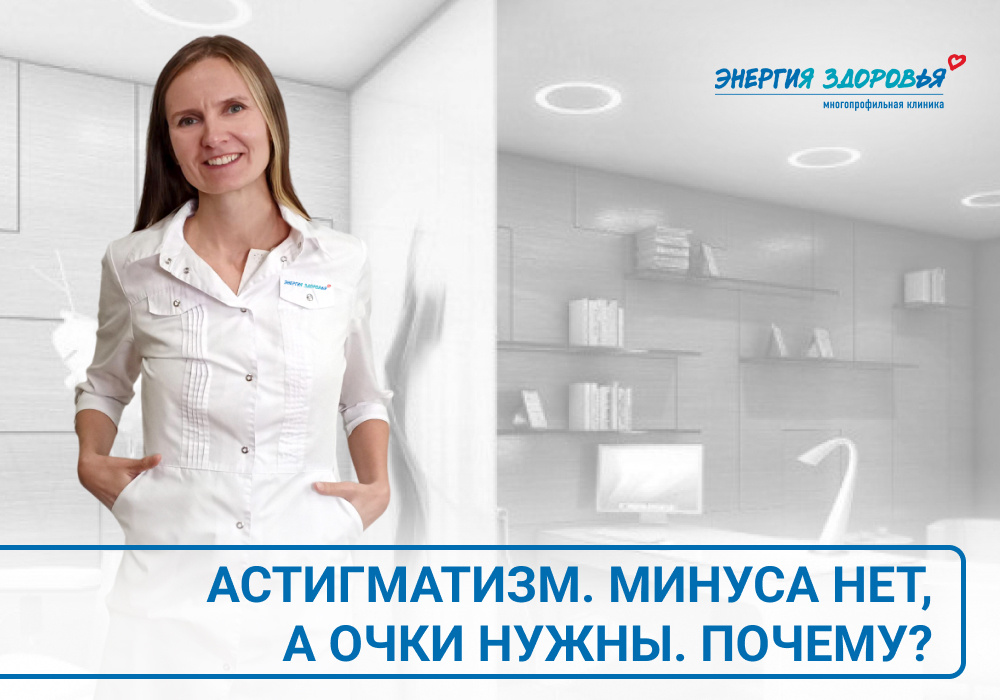 На этот вопрос ответит врач-офтальмолог клиники “Энергия здоровья” Гонтарь Алена Валентиновна. Фраза «минуса нет» означает лишь то, что у вас нет близорукости (миопии). То есть механизм фокусировки вдаль не сломан. Но астигматизм — отдельная история. Это проблема качества изображения, а не его дальности. Слово «астигматизм» звучит пугающе и по-медицински сложно. Но на самом деле это не страшный диагноз, а просто особенность строения глаза. Если оптическая система глаза не сферичная, то такую аномалию рефракции глаза называют астигматизмом (от греч.astigmatism: a- отрицательная приставка, stigma - точка).
