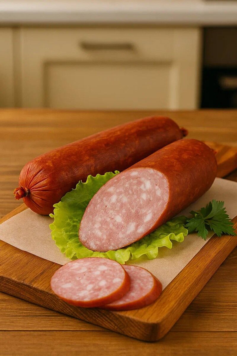🥩 Колбаса «Полтавская полукопчёная» (Ø 45 мм) 🥩 👉🏻 Вам понадобится (на 1 кг фарша): • Свинина полужирная – 600 г • Говядина нежирная – 250 г • Шпик свиной (твёрдый) – 150 г • Лёд/ледяная вода – 100 г • Нитритная соль – 6 г • Соль поваренная – 10 г • Сахар – 3 г • Перец чёрный молотый – 1.5 г • Перец душистый молотый – 0.5 г • Кориандр молотый – 1 г • Чеснок свежий/сушёный – 4 г • Коллагеновая оболочка Ø 45 мм – 2 м 🔪 Готовим фарш: Мясо охлаждаем до −2°C, нарезаем кусками. Говядину пропускаем через решётку 3–4 мм, свинину — через 6 мм. Шпик нарезаем кубиком 5–6 мм, подмораживаем. Вымешиваем мясо с нитритной и поваренной солью, сахаром и специями, постепенно вводим лёд. Фарш доводим до липкой консистенции. В конце вмешиваем шпик и чеснок. Массу выдерживаем 6–8 ч в холодильнике при +2-4°C. 🥊Набиваем оболочку: Оболочку Ø 45 мм замачиваем, надеваем на шприц. Плотно набиваем, формируем батоны по 25–30 см. Перевязываем шпагатом, прокалываем иглой для удаления воздуха. 🧑🏼🍳Готовим