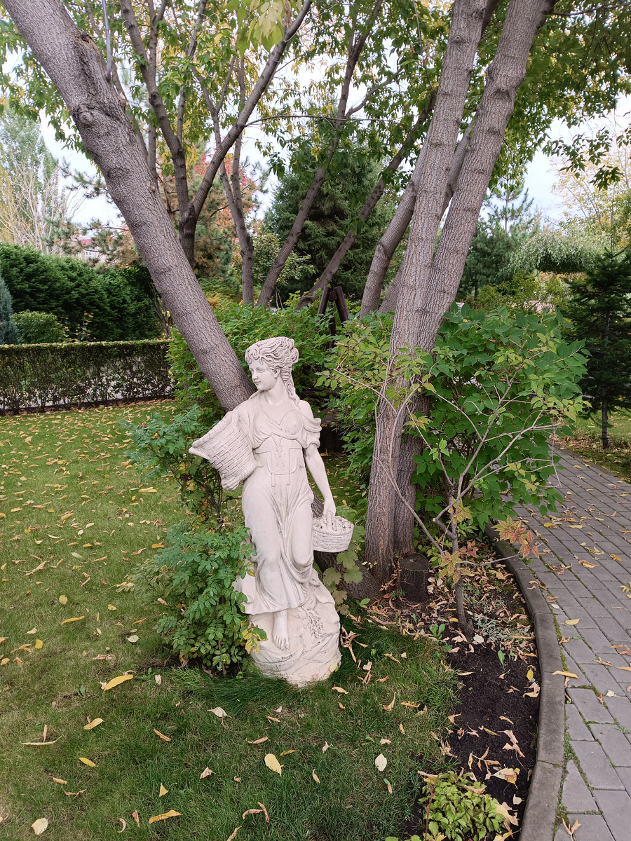 Что приятно удивило, в Садах много интересных скульптур и, причем все разные, нет повторяющихся, кроме тех которые по симметрии должны быть парами. Скульптуры в женском образе: Скульптуры, имитирующие детский образ: Скульптура в японском стиле украшает японский сад. Скульптуры, запечатлевшие облик животных. Отдельно хотелось выделить водные скульптуры. Это прежде всего красивый фонтан с чашами. Летом его окружают цветущие растения. Фонтан меньшего размера. Оригинальные скульптуры-фонтаны. Гуляя по парку, замечаешь хвойные и лиственные деревья с выстриженными формами. Они не вычурные и прекрасно вписываются в общий облик Садов. Спирали можжевельников: Ели хорошо поддаются стрижке. Деревца в стиле ниваки. Повсюду встречаются живые изгороди из кустарников. Функция живых изгородей – обрамление дорожек, зонирование, создание зеленых комнат. И такие декоративные формы выстригаются из кустов: В регулярном саду стриженные формы – неотъемлемая часть ландшафта. Беседки, домики, перголы, арки п