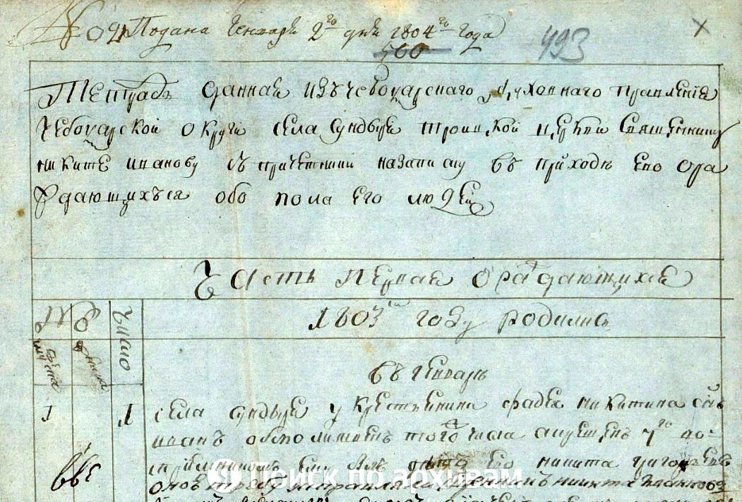 Метрические книги о рождении, браке и смерти за 1803 год. 1 января 1803 - 31 декабря 1803. ГИА Чувашской Республики, фонд № 225, опись № 3, дело № 73, стр. 735 скан. Подана генваря 2-го дня 1804 года. Тетрадь данная из Чебоксарского духовного Правления Чебоксарской округи села Сундырь Троицкой церкви священнику Никите Иванову с причетники на записку в приходе ево о раждающихся обоего пола его людей. Часть первая о раждающихся. 1803 году родились Стр. 738 скан. В генваре. № 11. 5 числа. Села Сундыря у крестьянина Максима Иванова сын Василей обмолитвен того ж числа а крещен 9-го. Восприемником ему был того ж села крестьянин Ефим Иванов. Оную требу исправляли священник Никита Иванов Диакон Александр Петров Диачек Степан Михайлов Диачек Стефан Герасимов. https://yandex.ru/archive/catalog/be314f41-e267-45fa-b16e-96dac130732a/738