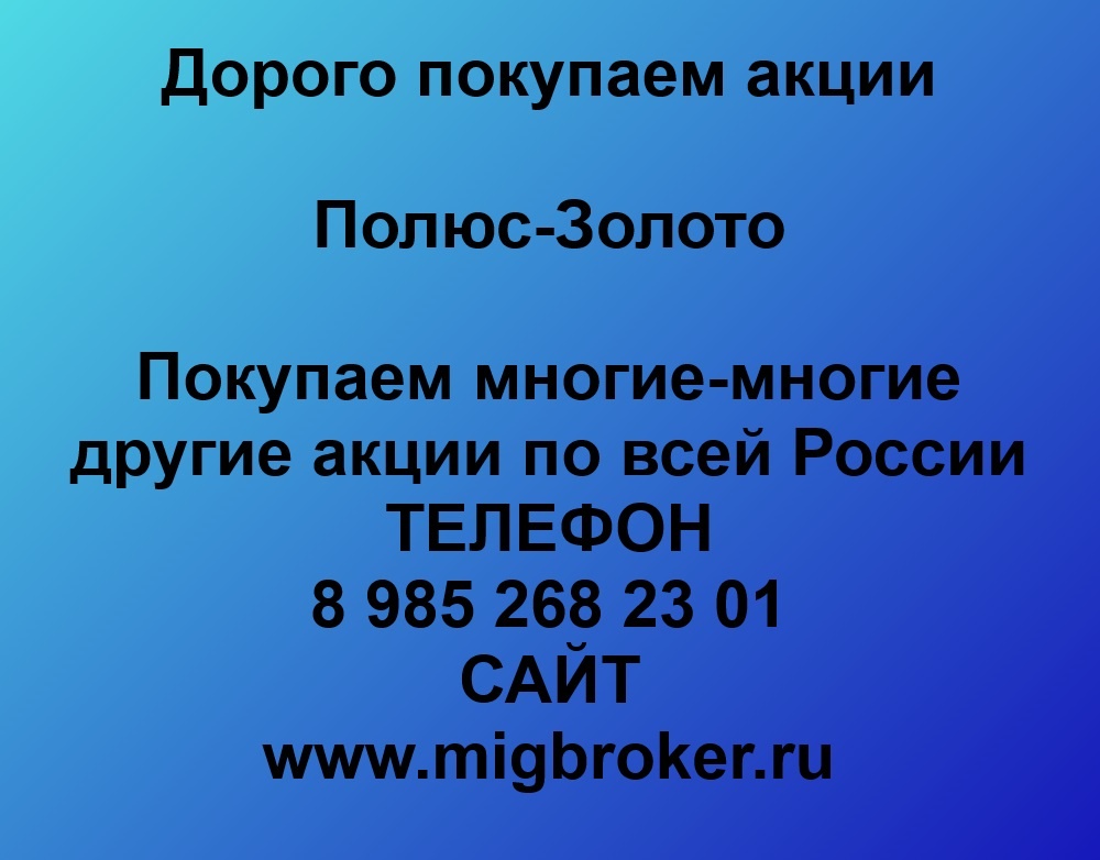 Хотите оперативно реализовать акции ПАО «Полюс‑Золото» и получить деньги сразу? Мы предлагаем вам выкуп акций по рыночной цене — быстро, надёжно и с соблюдением всех юридических норм. Почему стоит продать акции именно сейчас? Как продать акции? Не упустите возможность выгодно продать акции «Полюс‑Золото»! Текущая рыночная конъюнктура создаёт благоприятные условия для сделки — воспользуйтесь этим моментом. Оставьте заявку прямо сейчас — и уже сегодня ваши акции превратятся в ликвидные средства! Примечание: стоимость акций зависит от текущих биржевых котировок. Для точного расчёта цены свяжитесь с нами — мы оперативно предоставим актуальный расчёт.