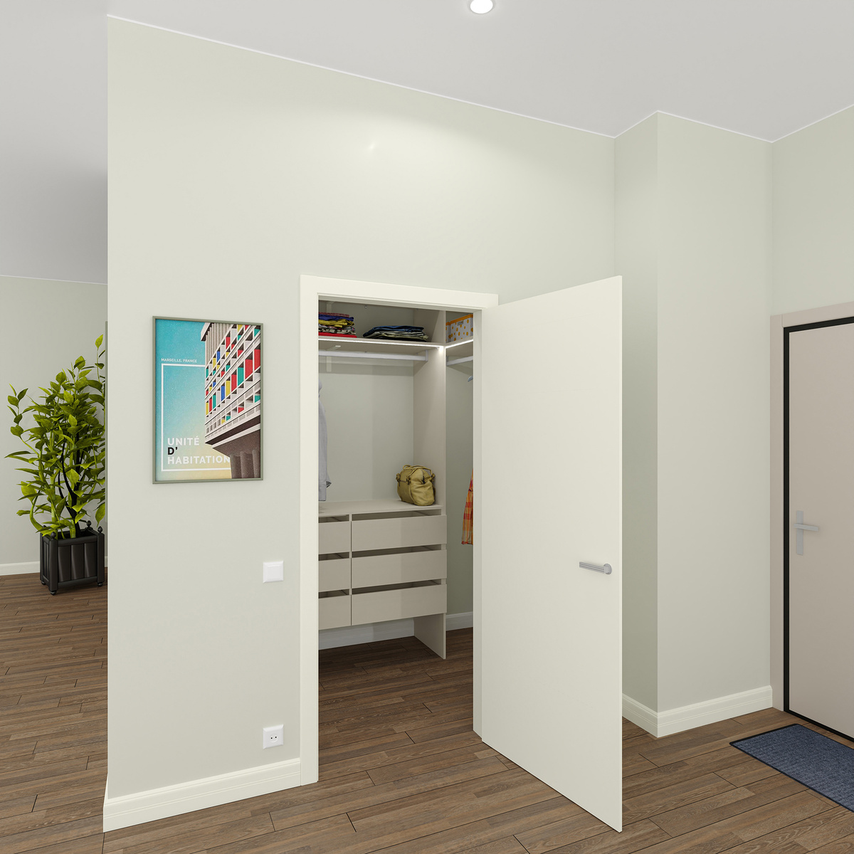 Мы сделали гардеробную в одном ЖК в Москве. Хозяйка поделилась в чате нашими контактами, к нам обратилось еще несколько человек за изготовлением мебели. Один сказал - буду заказывать. Вот что я ему спроектировал. Пока правда все на словах. Цена и сроки устроили, изобразил еще одну гардеробную, но ее немного нужно переделать, может позже покажу. Гардеробные сложно показать, приходится стены убирать. Эта гардеробная очень похожа на ту, что мы уже сделали. Вот фото. Ну вот примерно такую же и хотят.
