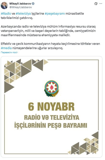 ⚡️ Микаил Джаббаров поздравил работников радио и телевидения